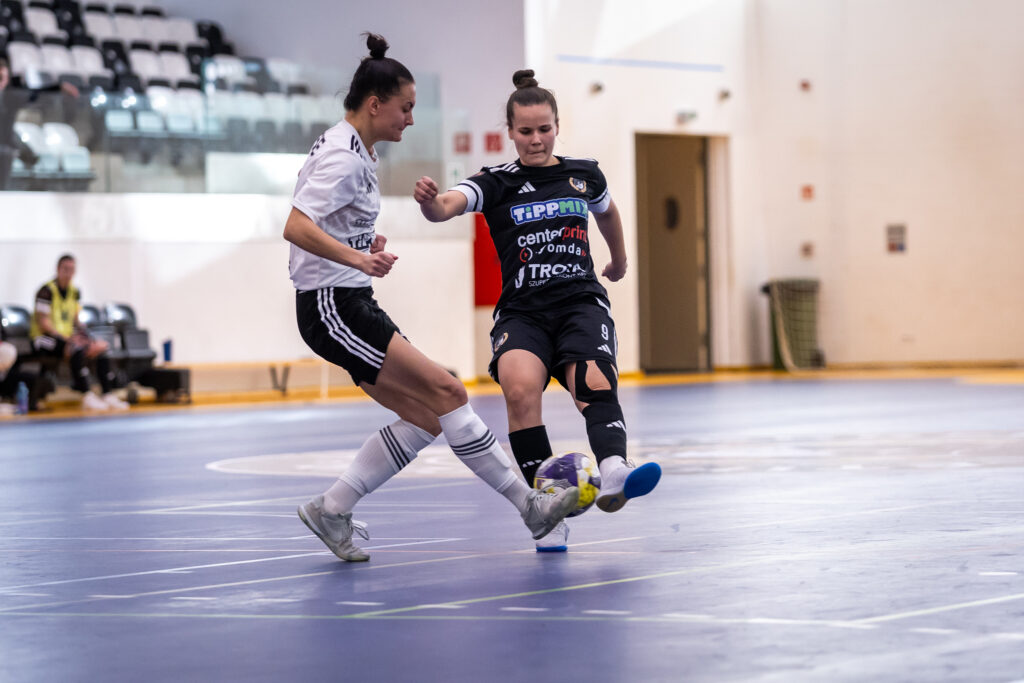 Horváth Viki és Krascsenics Csilla lövéseivel indult a meccs, míg a másik oldalon Csikó Noémi tesztelte Kopjári Lizát. A félidő derekán Horváth Viki kétszer is bebizonyította, hogy remek rúgótechnikával rendelkezik. Kulcsemberünk előbb a kapu bal oldalába lőtte a labdát, nem sokkal később pedig egy szögletvariáció után állítgatás nélkül bombázott a léc alá. A második bekapott gólt követően a fővárosiak edzője, Viza Krisztián időkéréssel próbálta rendezni a sorokat. A rövid eligazítás után veszélyesebbé vált ellenfelünk játéka, Benkő Mónika közel járt a szépítéshez, ám a nagy helyzetet nem tudta értékesíteni. Ami nem ment neki, az összejött Nagy Anikónak, magyar válogatott futsalosunk egy szép támadás végén köszönt be.