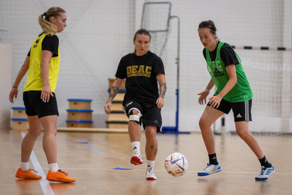 Néhány hét pihenőt követően megkezdte a felkészülést az új idényre a DEAC női futsalcsapata. Ezt az időszakot nem sok sportoló szereti, ennek ellenére a hétfői edzésen csupa mosolygós arcot láthattunk. A foglalkozás elején a mobilizáció került a fókuszba, majd labdás gyakorlatok jöttek. A játékosok július elejétől otthoni feladatokkal hangoltak az alapozásra, így nem a nulláról indult a munka.