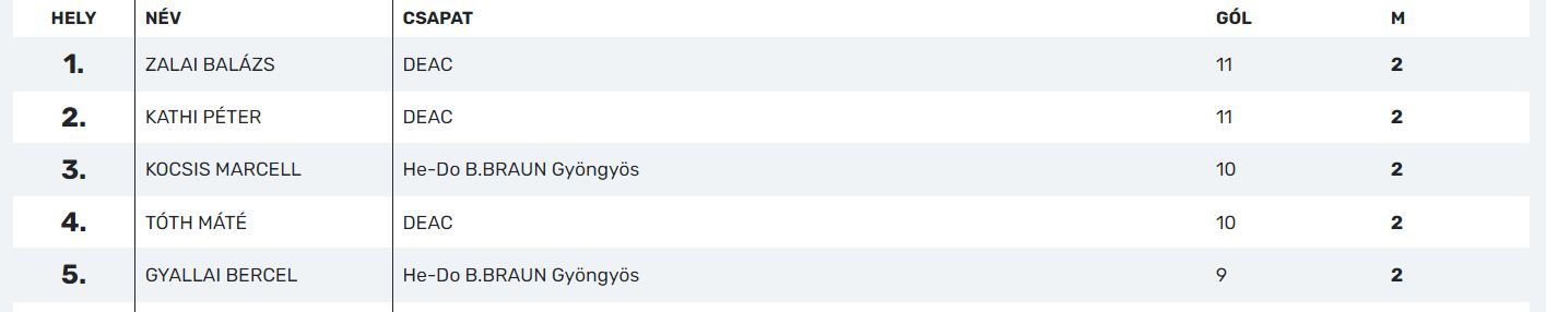 Az első találkozón 37-29-re alulmaradtunk a gyöngyösiekkel szemben, a másik mérkőzésen azonban 27-26-os győzelmet arattunk. Ezzel a második helyen zártunk, míg a tornát a Heves megyeiek nyerték meg. A góllövőlista élén két DEAC-játékos, Zalai Balázs és Kathi Péter végzett 11-11 találattal.