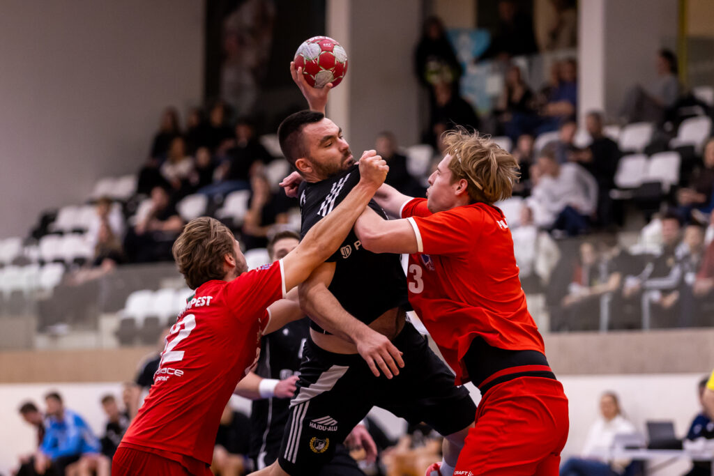 Ezúttal a kapunkat az a Maródi Ádam védte, akinek bokasérülés miatt néhány hetet ki kellett hagynia. A meccs első két gólját mi lőttük, ám az örömünk nem lehetett felhőtlen, hiszen Kovács Bence korán kétperces büntetést kapott. Sőt, balátlövőnknek a 11. minutumban a piros lapot is felmutatták a játékvezetők egy arcra ütés miatt, ekkor egyébként 4-6 volt az állás. Sajnos támadásban sok labdát elszórtunk, többek között ennek köszönhetően kerültünk hátrányba. Aztán Tóth Máté hetesből szerzett találatával a 19. percben újra mi álltunk jobban (10-9). Jobbszélsőnk a mérkőzésen biztos kézzel értékesítette a büntetőket, ebben a tekintetben 4/4-es mutatóval zárt. A csereként beszálló Bakó Ádám új lendületet hozott a játékunkba, a betöréseivel sok fejtörést okozott a vendégeknek. A szünet előtti periódusban 4-0-s sorozatot repesztettünk, így 14-14-ről 18-14-re változott az eredmény.