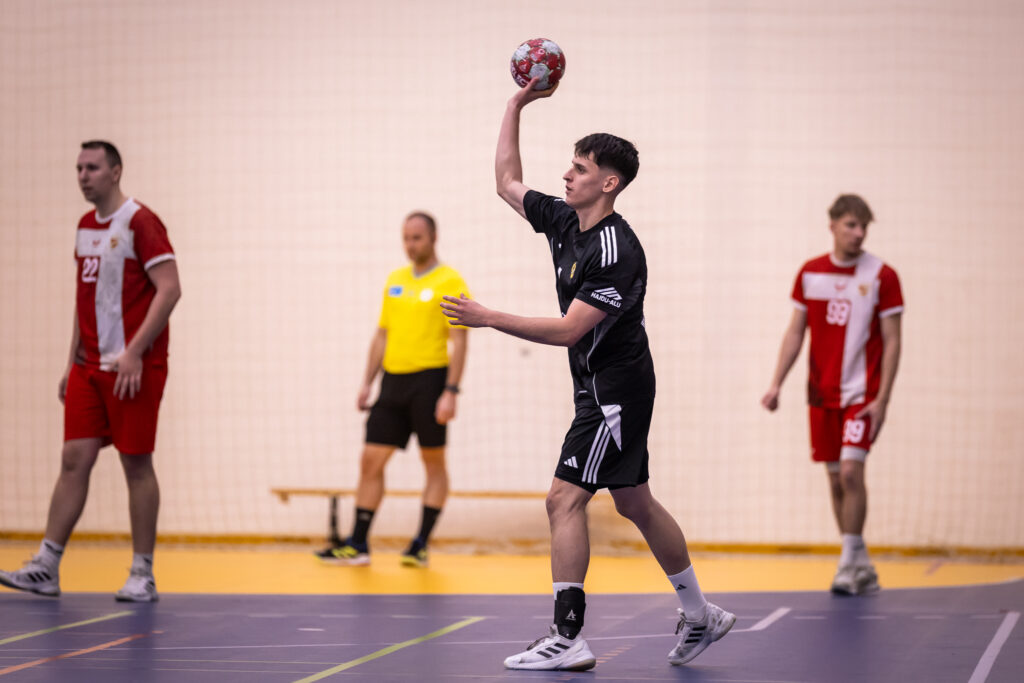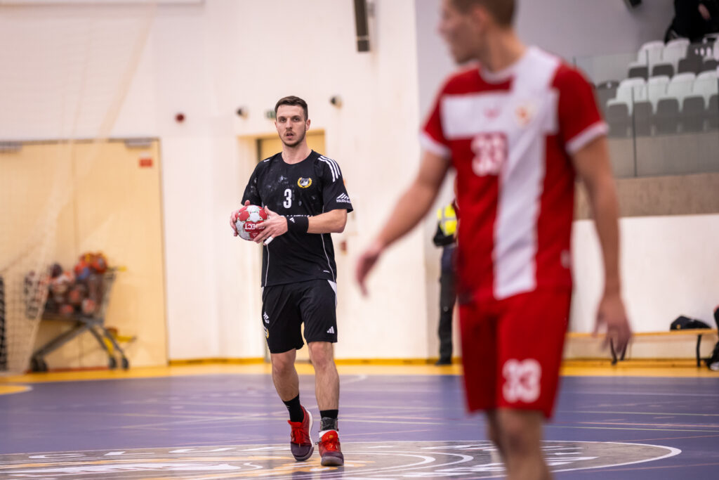 Mándi Norbert a mérkőzés előtt azt nyilatkozta, hogy a DVTK gyakran hosszú ideig építi a támadásait. Vezetőedzőnk szavait az első akció egyből alátámasztotta, hiszen ez nagyjából 1 perc 20 másodpercig tartott. Nálunk az elején Kovács Bence volt a vezéregyéniség, balátlövőnk szerezte az első négy találatunkat. Aztán Kiss Axel is elkezdte a gólgyártást, ő a 13. percig már ötször vette be a vendégek kapuját. Kiss többek között hetesből és gyors indításból is eredményes volt, sőt, akadt egy nagyon látványos megoldása is. A 16. minutumban 14-7-es vezetésünknél időt kért a diósgyőriek vezetőedzője. Az eligazítása után is kézben tartottuk a mérkőzést, majd 18-11-es állásnál a játékvezetők néhány másodpercen belül két vitatható ítélettel minket sújtottak. A szurkolótáborunk mellett Mándi Norbertnek sem tetszettek ezek a döntések, trénerünk reklamálás miatt sárgát kapott. A diósgyőriek a beállóst tömték labdákkal, ezzel a taktikai elemmel próbálták tartani a lépést. Végül az első félidő Tóth Máté sikeres büntetőjével és 24-17-es állással zárult.