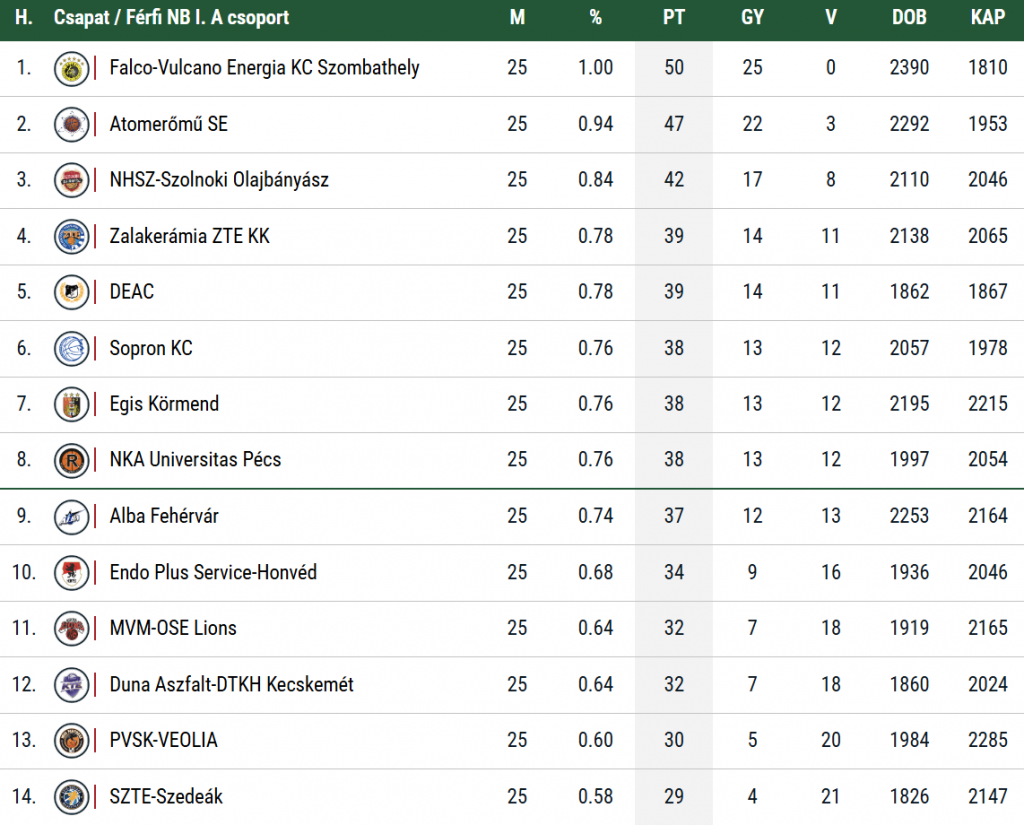 Az elmúlt héten a Szeged elleni hazai sikerrel bebiztosították helyüket a Tippmix Férfi NB I. A rájátszásban a Debreceni Egyetem kosarasai, de az utolsó forduló sem lesz tét nélküli, hiszen korántsem mindegy hányadik kiemeltként kezdhetik meg a negyeddöntőt a hajdúságiak. Mócsán Bálinték egy győzelemmel biztosan megtartják jelenlegi ötödik helyüket, sőt, akár a pályaelőnyt jelentő negyedik pozícióra is van még esélyük, ám ehhez az OSE két vállra fektetése mellett a ZTE veresége is kell Kecskeméten. Vereség esetén az 5-7. hely valamelyikén zár a DEAC, a már említett Zalaegerszegen kívül a Sopron, az NKA és a Körmend mérkőzésein is múlik a fehér-feketék sorsa.